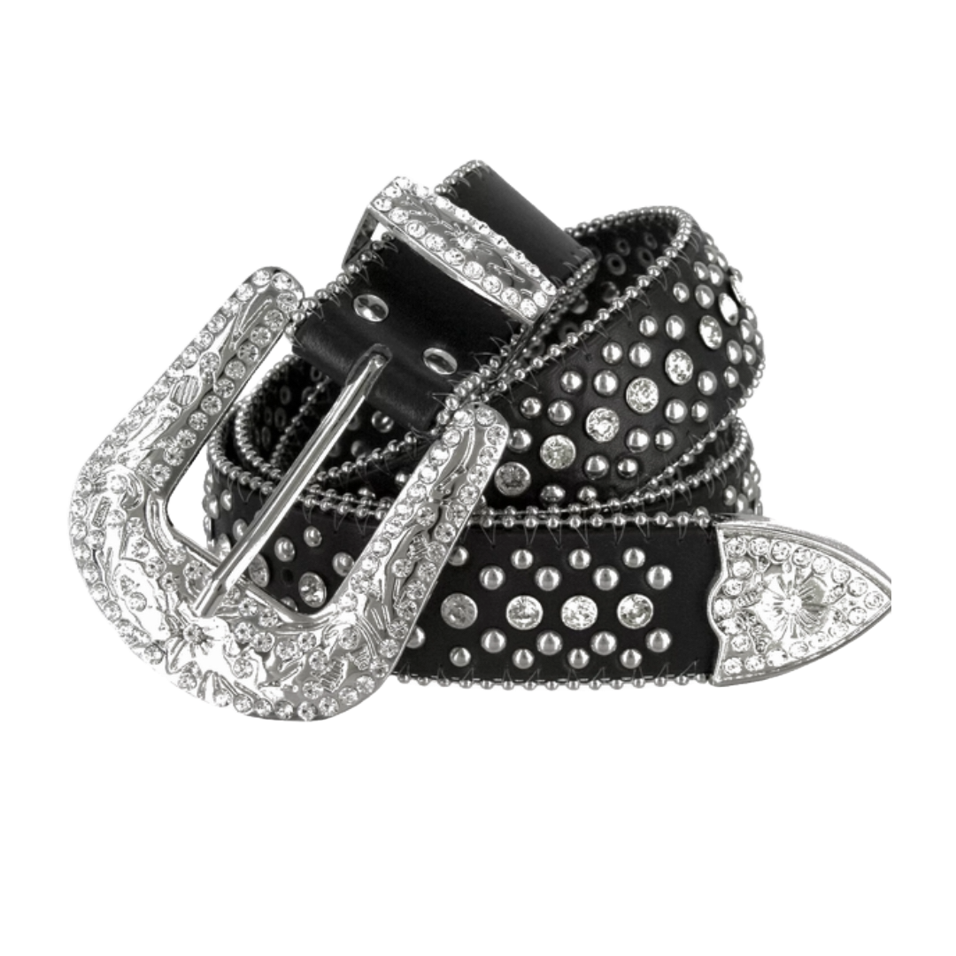 Introducing our Black Beyond Rhinestone Belt, crafted with sparkling rhinestones and genuine leather for a touch of elegance. Available in five sizes, it adds instant flair to any outfit.