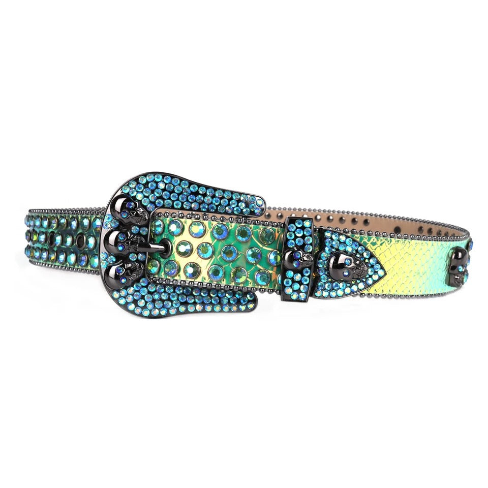Introducing our Reptile infinity Skull Leader Rhinestone Belt crafted with sparkling rhinestones and genuine leather for a touch of elegance. Available in five sizes, it adds instant flair to any outfit.