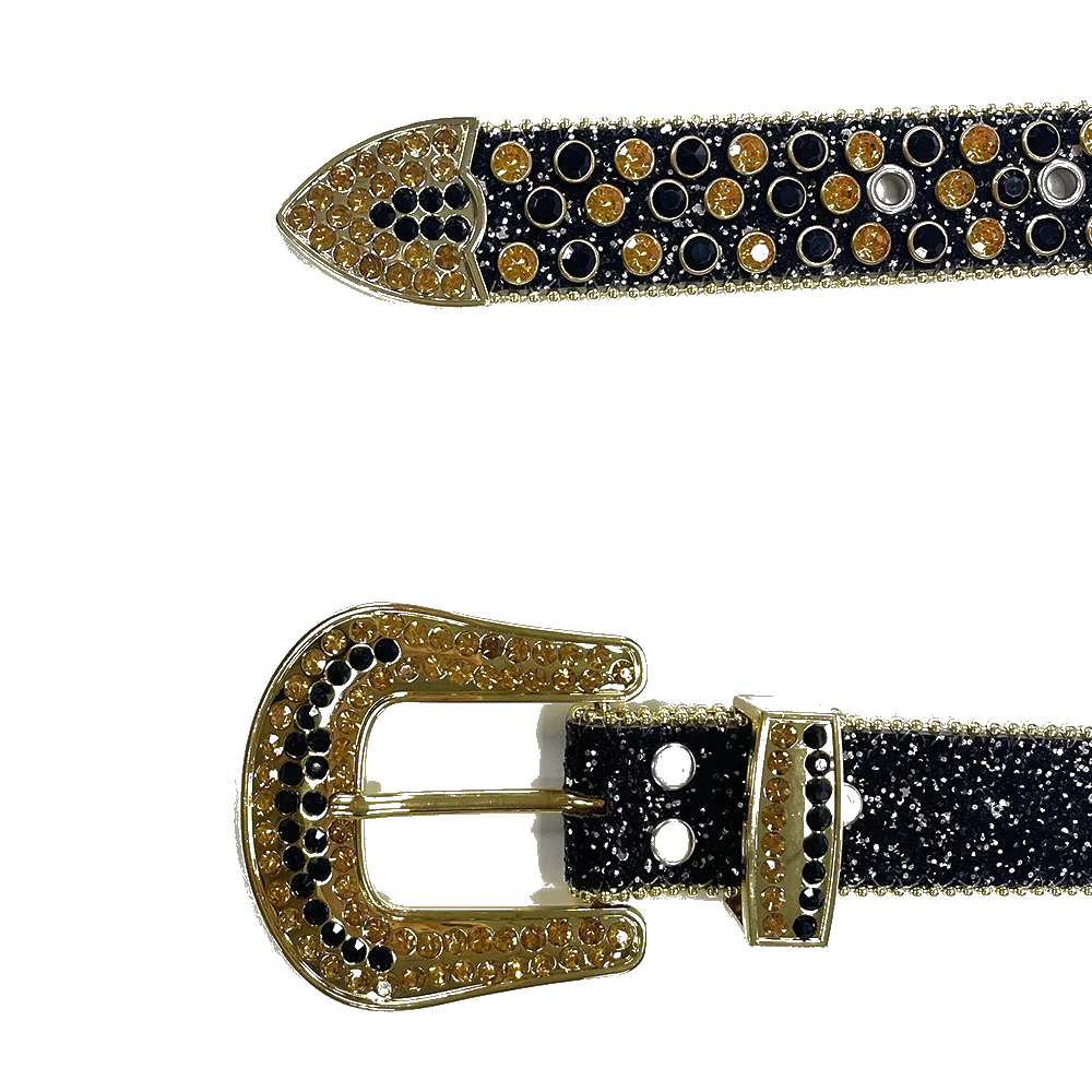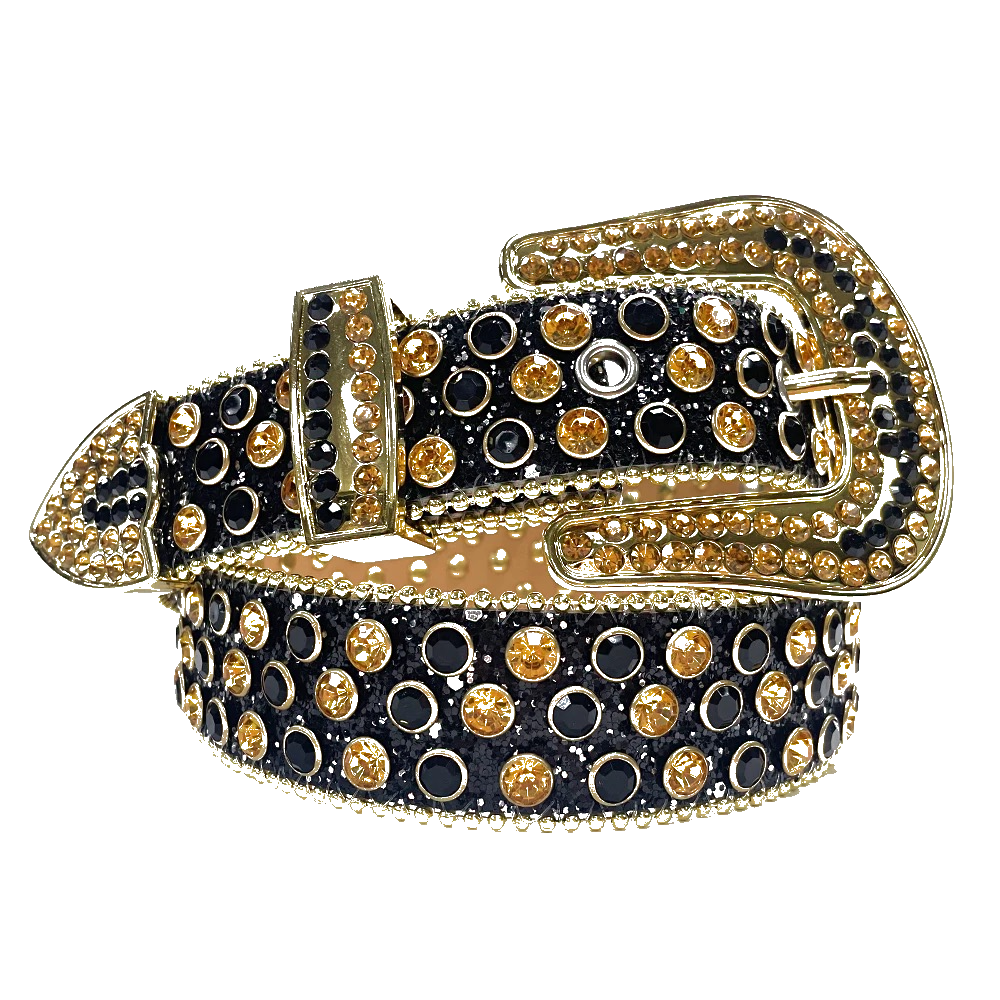 Introducing our Gold 2 Infinity Rhinestone Belt crafted with sparkling rhinestones and genuine leather for a touch of elegance. Available in five sizes, it adds instant flair to any outfit.